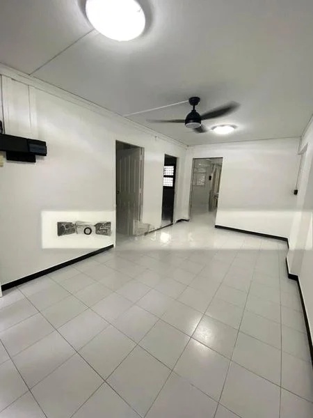 Step into this well-maintained 2-bedroom flat, where a simple and functional ambiance greets you. The white tiled flooring and neutral walls create a bright and airy feel, enhanced by the natural light that filters through the windows. Although the urban view is partially obscured by window grilles, the space feels open and inviting, perfect for relaxation.