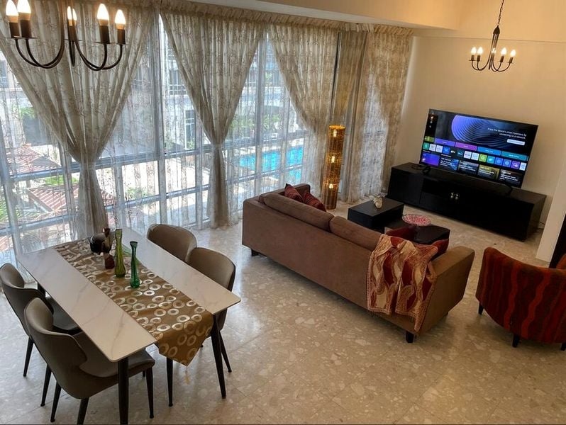 Step into a world of light and space in this well-maintained 3-bedroom unit at Riverdale Residence. The open layout of the living room, adorned with large format ceramic tiles and abundant natural light, creates an inviting atmosphere. Enjoy the serene views of greenery and the urban landscape through large windows, enhancing the bright and airy ambiance throughout the home.