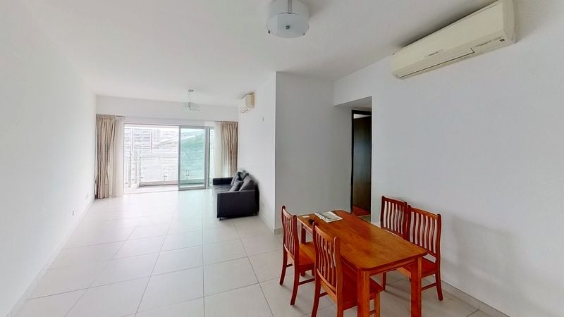Step into this beautifully maintained 4-bedroom unit at The Rochester Residences, where modern minimalist design meets urban charm. The moment you enter, you are greeted by an abundance of natural light that dances across the glossy white cabinetry in the galley kitchen and highlights the elegant mosaic tile feature wall in the bathroom. The ambiance is inviting, with a seamless flow from the living area to the balcony, offering a refreshing view of the neighboring buildings.