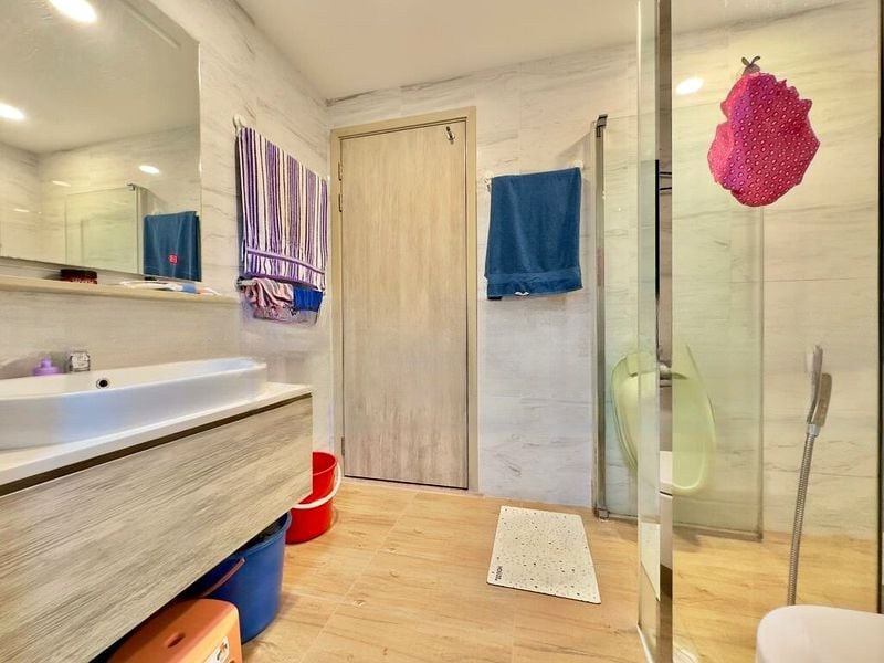 Step into a serene oasis at The Alps Residences, where modern minimalist design meets comfort. The well-maintained unit features wood-look flooring throughout, complemented by ample natural light streaming through large windows, creating an inviting ambiance. Enjoy urban views from the living room, adorned with a ceiling fan and stylish day and night curtains, perfect for relaxation after a long day.
