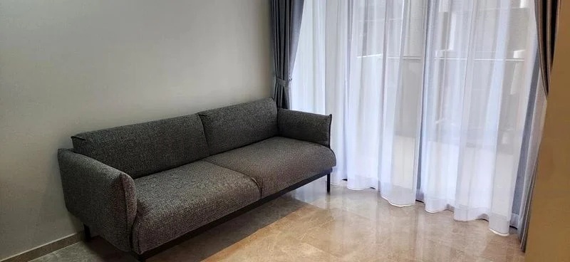 Step into a world of modern elegance as you enter this beautifully renovated unit at HAUS ON HANDY. The abundant natural light floods through the floor-to-ceiling windows, illuminating the marble-look tile flooring and creating a warm, inviting ambiance. With a seamless flow to the balcony, you can enjoy serene views of lush greenery and neighboring buildings, perfect for unwinding after a long day.