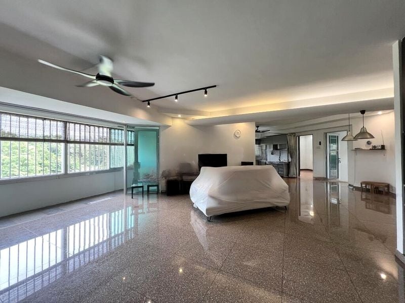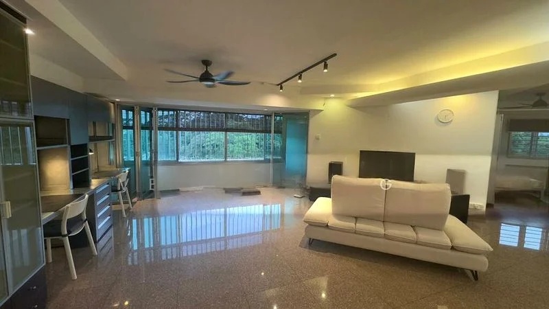 Step into a bright and airy sanctuary at 402 Bukit Batok West Ave 7, where polished stone flooring greets you in the open-concept living area, enhanced by abundant natural light streaming through large windows. The ambiance is inviting, with views of lush greenery and nearby residential buildings, creating a serene escape from the city bustle.