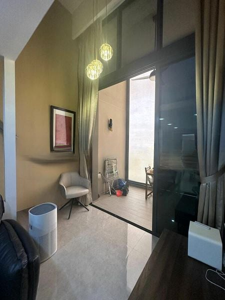 Step into a world of modern elegance as you enter this beautifully maintained unit at The Tapestry. The high ceiling in the living area creates an airy ambiance, complemented by floor-to-ceiling windows that invite natural light and offer captivating urban views. The minimalist design is accentuated by modern pendant lighting and polished tile flooring, making every corner a visual delight.