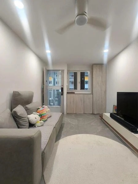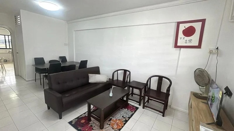 Step into this inviting HDB flat, where simple elegance meets functionality. The moderate natural light filters through the windows, highlighting the white tiled flooring and crown molding in the living room. The cozy study nook and fully-furnished layout create a welcoming ambiance, perfect for relaxation or productivity.
