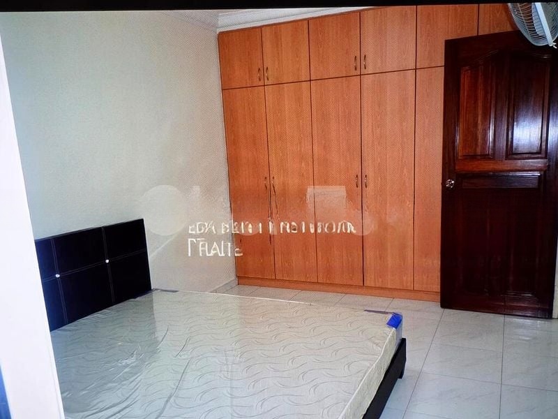 This unit boasts a practical layout with two comfortable bedrooms, including a master bedroom with a large built-in wardrobe. The kitchen is equipped with a long countertop, built-in lower cabinets, and a wall-mounted dish rack, perfect for culinary enthusiasts. Additional highlights include tiled flooring throughout, a ceiling-mounted laundry drying rack in the utility area, and a cozy ambiance that makes this flat feel like home.