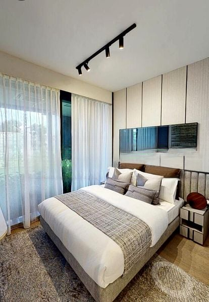 This 1-bedroom unit features a well-designed layout, showcasing standout elements such as a rain shower in the bathroom and a sleek kitchen equipped with a built-in Electrolux oven and induction hob. The glass backsplash and modern wood-grain cabinetry elevate the cooking experience, making it a delight for any home chef. Enjoy the comfort of split-unit air conditioning throughout, ensuring a cool retreat in the heart of Singapore.
