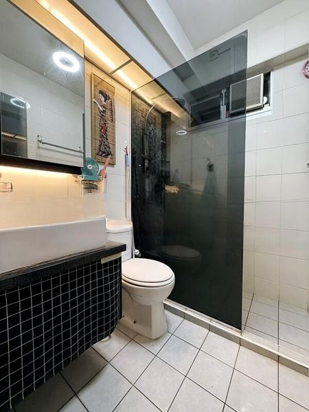 Step into a world of modern elegance as you enter this well-maintained HDB unit at 211B Punggol Walk. The sophisticated ambiance is accentuated by designer renovations, featuring striking diamond-patterned wall panels and a luxurious marble-topped dining table that invites gatherings. Natural light may be limited, but the under-cabinet LED lighting creates a warm, inviting glow throughout the space.