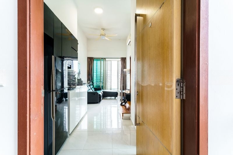 Step into a sanctuary of light and space in this beautifully renovated 1-bedroom unit at SUITES @ GUILLEMARD. The abundant natural light floods through large windows, creating a bright and airy ambiance that instantly uplifts your spirits. Enjoy serene views of greenery and neighboring buildings from your private balcony, complete with elegant wooden decking, perfect for unwinding after a long day.