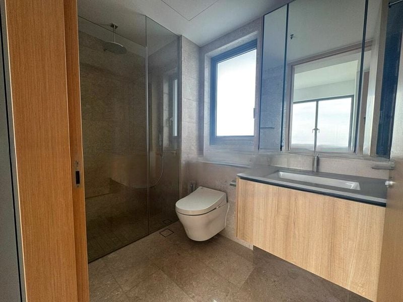 This well-maintained 2-bedroom unit features standout elements including a contemporary kitchen with integrated wood-laminate cabinetry and stainless steel appliances, a luxurious bathroom with a rain shower and wall-hung toilet, and spacious bedrooms adorned with light wood-look flooring and full-height built-in wardrobes. Every detail has been thoughtfully curated to provide comfort and style, making this home a perfect retreat.