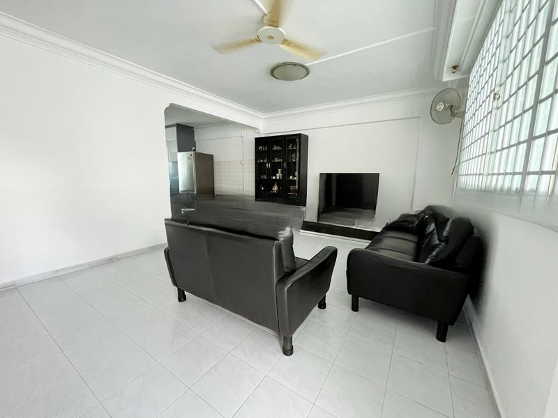 Step into this well-maintained 3-bedroom flat and feel the bright ambiance envelop you. The white tiled flooring reflects natural light, creating a warm and inviting atmosphere. Enjoy urban views from the living room, where recessed ceiling lights and a stylish white floating TV console enhance the modern aesthetic. Each room is equipped with ceiling fans, ensuring comfort throughout the day.