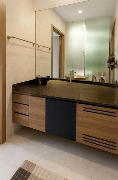 This efficient 1-bedroom plus study layout features an open-concept living area that seamlessly connects to a glass-enclosed study, ideal for a versatile workspace. The L-shaped kitchen boasts modern two-tone cabinetry and integrated appliances, while the master bedroom offers a spacious retreat with a floor-to-ceiling window and a stylish mirrored wardrobe. Enjoy the convenience of an integrated laundry setup within the kitchen, making daily chores a breeze.