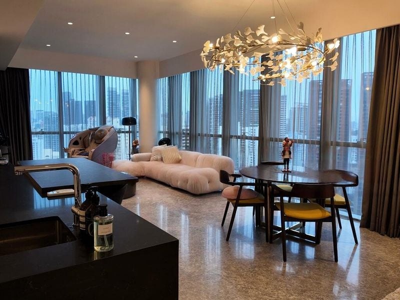 Step into a world of modern luxury as you enter this beautifully designed unit at Riviere. The polished marble flooring gleams under the abundant natural light streaming through the floor-to-ceiling windows, offering breathtaking views of the city skyline and the serene river. The ambiance is both inviting and sophisticated, making it the perfect retreat after a long day.