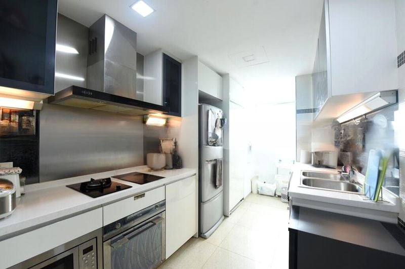 This well-maintained unit features a modern layout with standout highlights including a fully equipped kitchen with built-in appliances, a stylish mirror backsplash, and a cozy integrated laundry area. The luxurious bathroom boasts mosaic tile accents, a stunning crystal chandelier, and a chic vessel sink, while the hallway offers a touch of sophistication with recessed lighting and pristine white walls.