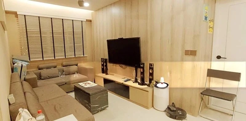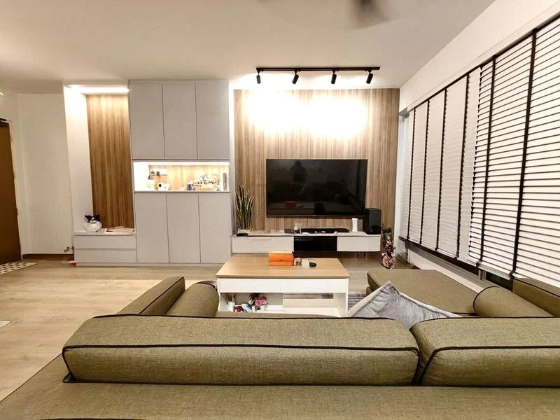 Step into a vibrant oasis where modern design meets abundant natural light. This beautifully renovated 5-room HDB unit welcomes you with polished tile flooring and a striking green accent wall in the open-concept living area. Large glass sliding doors lead to a spacious balcony, offering serene views of lush greenery and the urban landscape beyond.