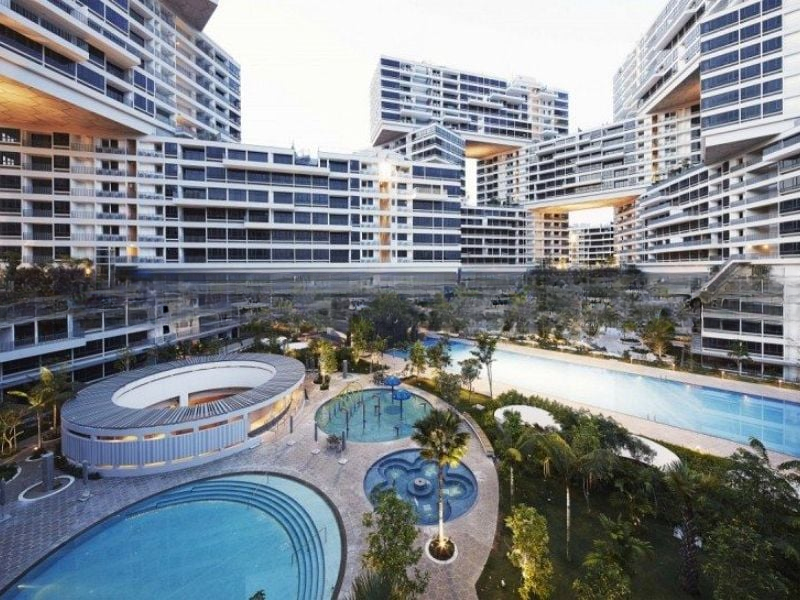 31 apartment blocks, each 6-storey tall, stacked in hexagonal arrangement