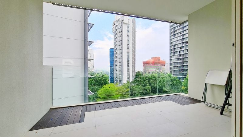Step into a world of modern elegance as you enter this beautifully renovated unit at The Peak @ Cairnhill I. Bathed in abundant natural light, the open living space features wooden flooring and a frosted glass partition that adds a touch of sophistication. Large windows framed by sheer curtains offer stunning views of lush greenery and the vibrant city skyline, creating a serene yet dynamic ambiance.