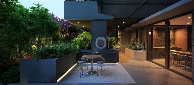 This exquisite 2-bedroom, 2-bathroom unit features standout elements such as textured wall paneling in the bedrooms, a fully-furnished dining area with a 6-seater wooden set, and a balcony equipped with built-in planters and an outdoor bar. The highlight is undoubtedly the rooftop infinity pool, complete with in-pool lounge chairs and ambient lighting, complemented by beautifully landscaped gardens and a cascading water feature that enhances the outdoor lounge experience.
