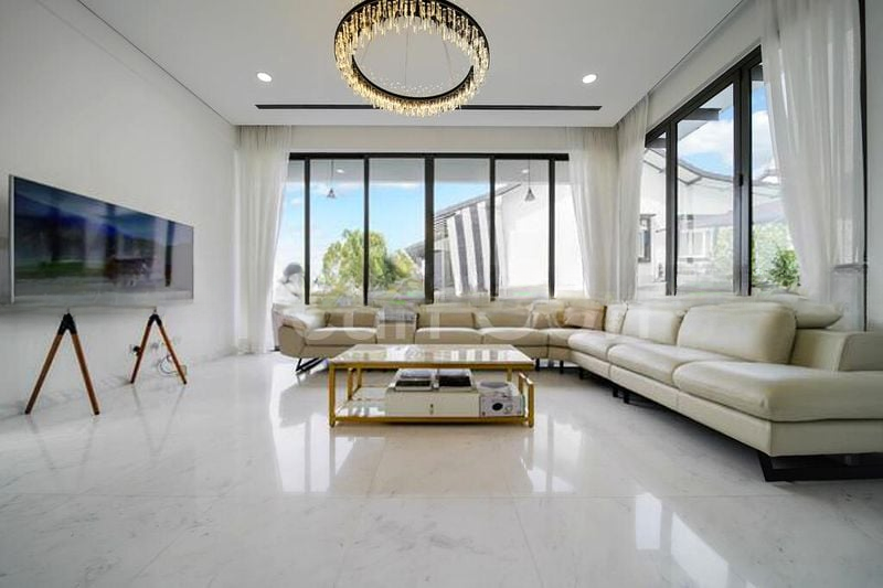 Step into a bright and airy sanctuary at Edelweiss Park Condominium, where abundant natural light floods through large windows, illuminating the elegant tiled flooring and enhancing the cove lighting in the living room. The inviting ambiance, complemented by a ceiling fan, creates a welcoming atmosphere that feels like home from the moment you walk in.