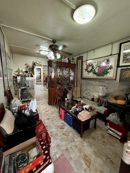 Step into a warm and inviting atmosphere as you enter this charming HDB flat at 407 Sin Ming Ave. The original terrazzo flooring greets you, complemented by a ceiling fan with integrated lighting that enhances the cozy ambiance. Traditional Chinese artwork adorns the living room, creating a unique character that feels like home.