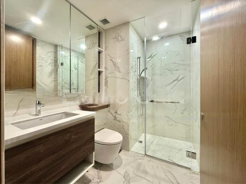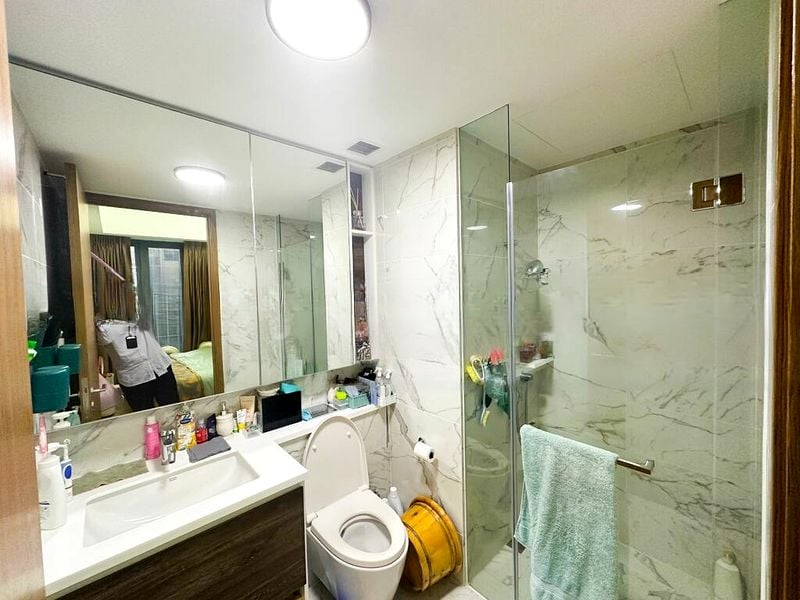 Step into this beautifully renovated unit at Parc Botannia, where abundant natural light floods the space through floor-to-ceiling windows, offering breathtaking views of the city skyline. The modern minimalist design is accentuated by elegant finishes, including marble-patterned bathroom tiles and recessed ceiling lighting that create a serene ambiance.