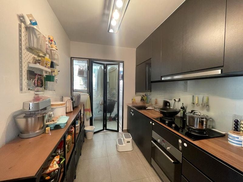 Step into a world of elegance as you enter this beautifully renovated HDB flat, where abundant natural light floods the open-concept living space, accentuating the sleek cement screed flooring and designer finishes. Large windows frame breathtaking panoramic views of the city skyline and lush greenery, creating a serene yet vibrant ambiance that invites relaxation and inspiration.