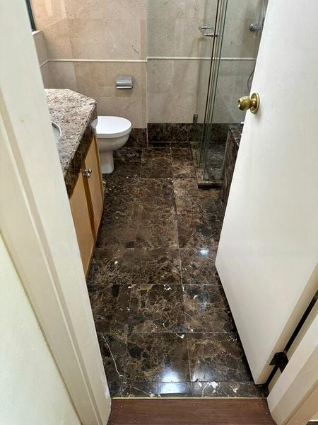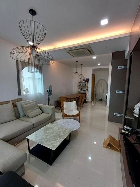 This well-maintained 3-bedroom unit features a thoughtful layout with generous living spaces. The living room seamlessly connects to the balcony, perfect for entertaining or unwinding. Each bedroom boasts dark wood parquet flooring and built-in wooden wardrobes, while the master bathroom impresses with its dark marble vanity and glass shower partition. The built-in L-shaped floating desk in the bedroom adds a functional touch to your living space.