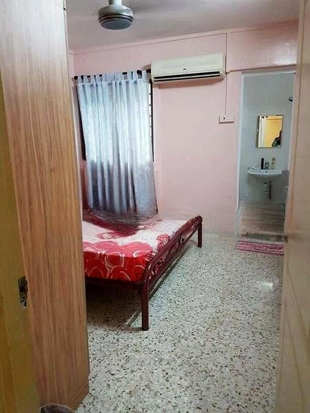 Step into this inviting 2-bedroom HDB flat and be greeted by the timeless charm of classic terrazzo flooring that flows seamlessly throughout the space. The moderate natural light filters through the windows, creating a warm and functional ambiance that feels both homely and practical. The open layout connects the living room, adorned with red fabric sofas, to the kitchen, making it perfect for entertaining or family gatherings.