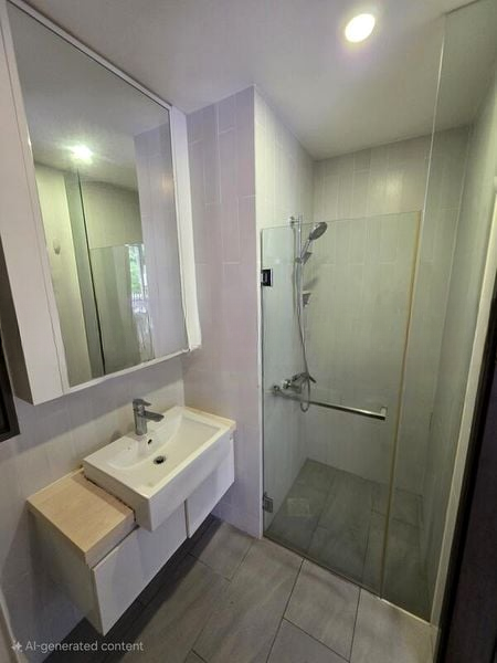 This thoughtfully designed unit boasts a modern kitchen with dark cabinetry, stainless steel appliances, and light-colored countertops, ideal for culinary enthusiasts. The master bedroom is a tranquil retreat, featuring wooden parquet flooring, large floor-to-ceiling windows, and a built-in sliding wardrobe. The en-suite bathroom is a luxurious haven with marble-look tiles and a rain shower, ensuring a spa-like experience at home.