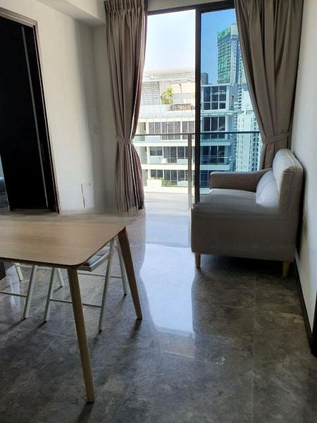 Step into a world of modern elegance as you enter this beautifully renovated unit at RV ALTITUDE. Bathed in abundant natural light, the open layout showcases breathtaking views of the city skyline and lush greenery, creating an inviting ambiance that feels both luxurious and serene. The minimalist design is complemented by high-quality finishes, including glass balcony railings that seamlessly blend indoor and outdoor living.