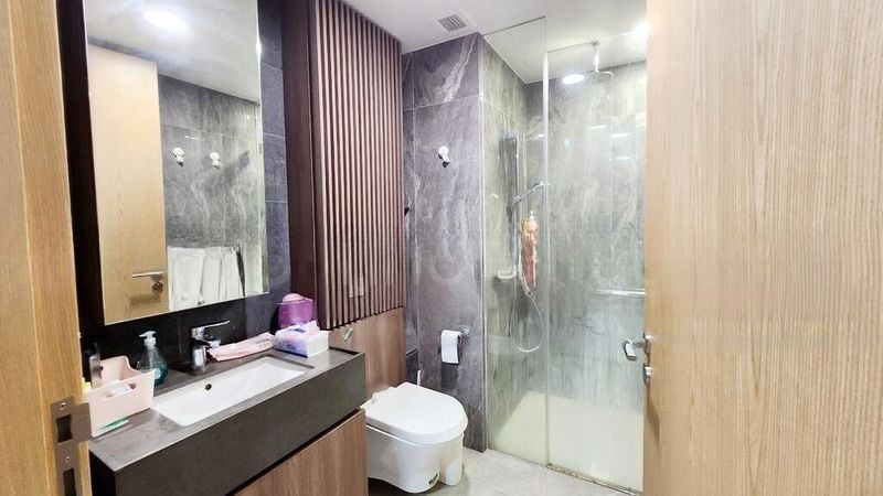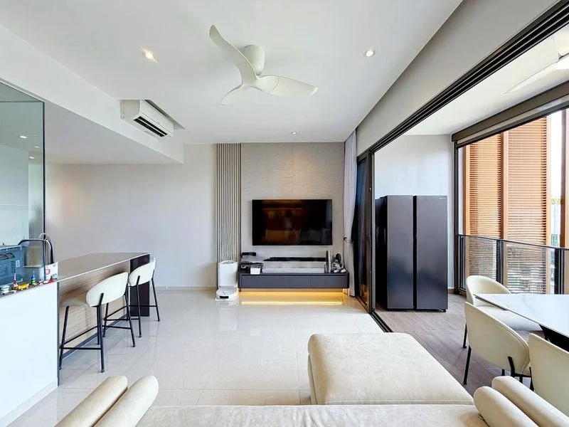 Step into this brand-new 1-bedroom unit at MIDWOOD and be greeted by an abundance of natural light that fills the open-concept living area. The polished floor tiles reflect the brightness, while the wooden balcony louvers and glass railing create a seamless connection to the lush greenery and stunning city skyline views beyond.