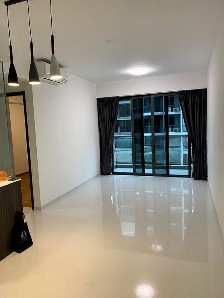 Step into a sanctuary of modern minimalism at North Park Residences, where abundant natural light floods the space, accentuating the polished tile flooring and elegant pendant lighting. The open concept living area, framed by sliding glass doors, offers a seamless connection to the greenery outside, creating a tranquil ambiance that invites relaxation.