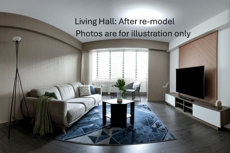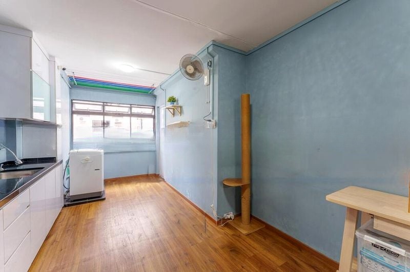 Step into this spacious HDB flat where the potential for transformation awaits. The moderate natural light filters through the windows, illuminating the basic yet functional ambiance. With green carpeting in the living room and white walls throughout, the space feels inviting, while the views of surrounding greenery provide a refreshing touch.
