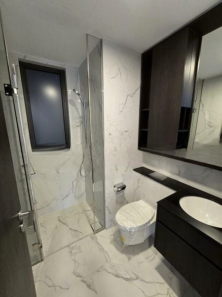 Step into a world of modern elegance as you enter this brand-new unit at LIV @ MB. The abundant natural light floods through the floor-to-ceiling windows, illuminating the spacious open-concept living area adorned with exquisite marble-look porcelain floor tiles. The serene views of greenery and the city skyline create an inviting ambiance that feels both luxurious and tranquil.
