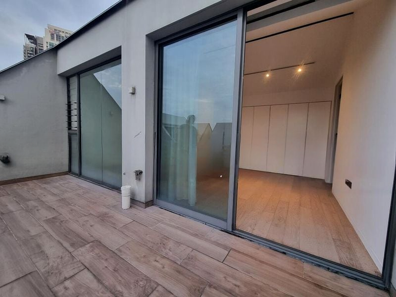 Step into a world of modern elegance as you enter this brand-new designer unit at 10 Evelyn. The open-concept living room greets you with warm cove lighting and a stunning textured wood feature wall, creating a cozy atmosphere that invites relaxation. Sliding glass doors lead to a charming balcony, perfect for enjoying your morning coffee amidst the tranquil surroundings.