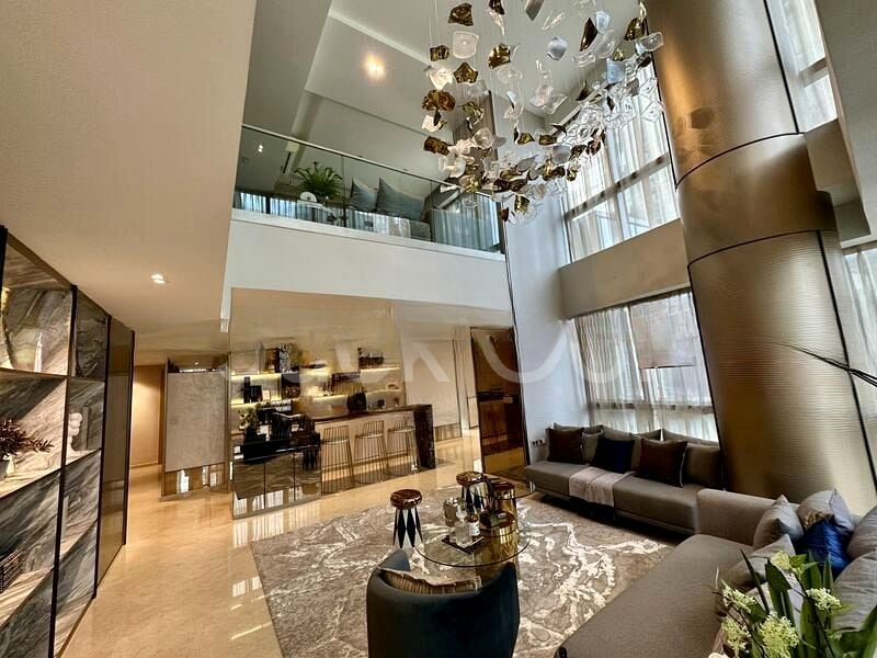 Step into a world of elegance as you enter this stunning unit at ONE SHENTON. The abundant natural light floods the space, accentuating the luxurious finishes such as the marble feature walls and designer chandeliers. With a double-volume ceiling and floor-to-ceiling windows, the living area offers breathtaking views of the city skyline, creating an ambiance that is both modern and inviting.