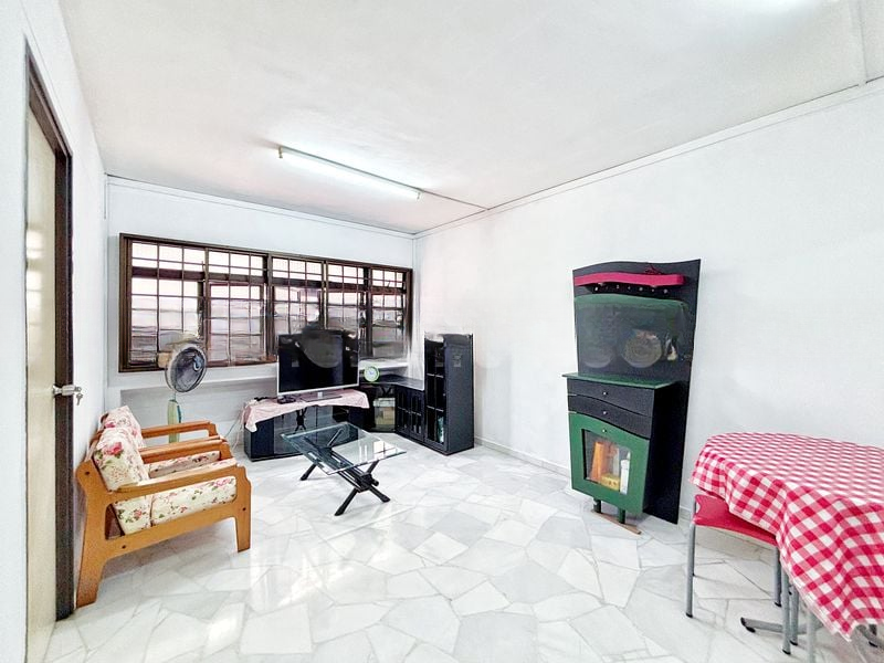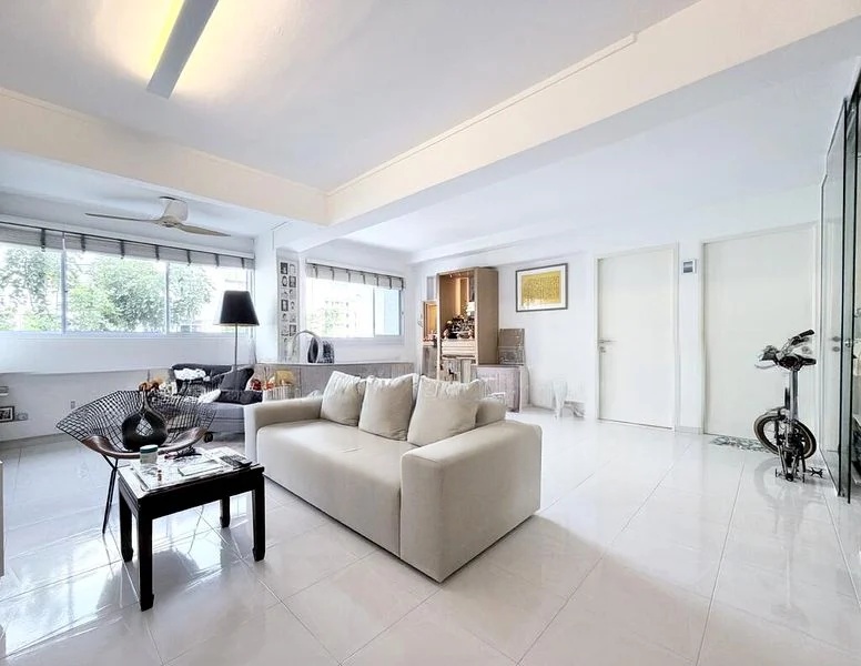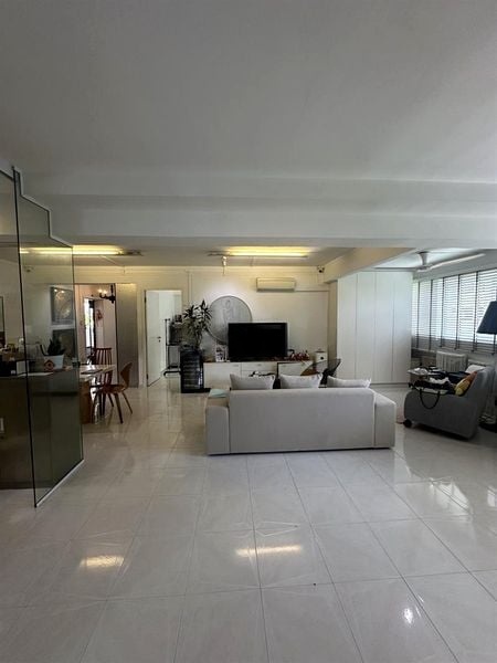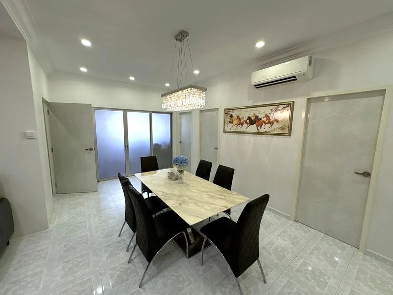 Step into a world of modern elegance as you enter this beautifully renovated HDB flat at 115 Whampoa Rd. The spacious foyer greets you with a designer black chandelier and a striking feature wall adorned with large artwork, setting the tone for the bright and airy ambiance that flows throughout the unit. Large windows invite abundant natural light, illuminating the open-concept living and dining area, where you can enjoy serene views of greenery and the urban landscape beyond.