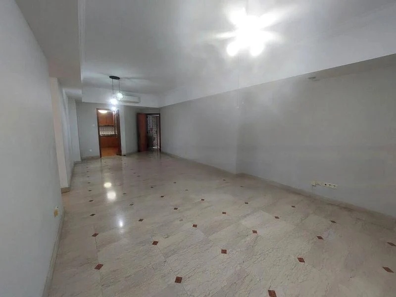 This well-maintained 2-bedroom unit features a spacious living room complete with an indoor putting green, perfect for leisure and relaxation. The master bedroom boasts wood-look flooring and large windows draped in rich red curtains, while the common bedroom is thoughtfully designed with an integrated study desk. The bathrooms are a luxurious retreat, showcasing marble wall and floor tiles, a separate bathtub, and a glass shower enclosure.