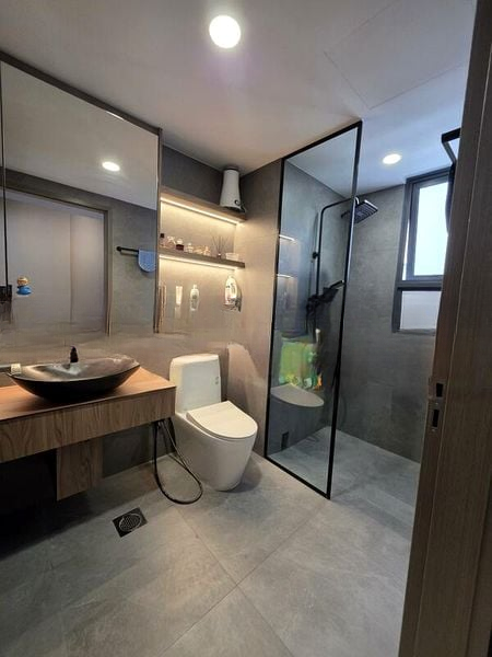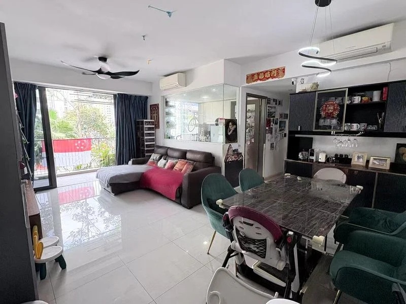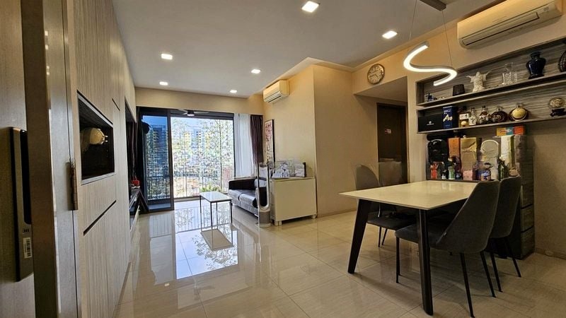 Step into a world of elegance and comfort in this beautifully renovated 3-bedroom unit at Bellewaters. Bathed in abundant natural light, the open-concept living room features a striking arched backlit feature wall and a curved sofa that invites relaxation. Floor-to-ceiling windows frame unblocked views of lush greenery and urban landscapes, creating a serene ambiance that feels both spacious and inviting.
