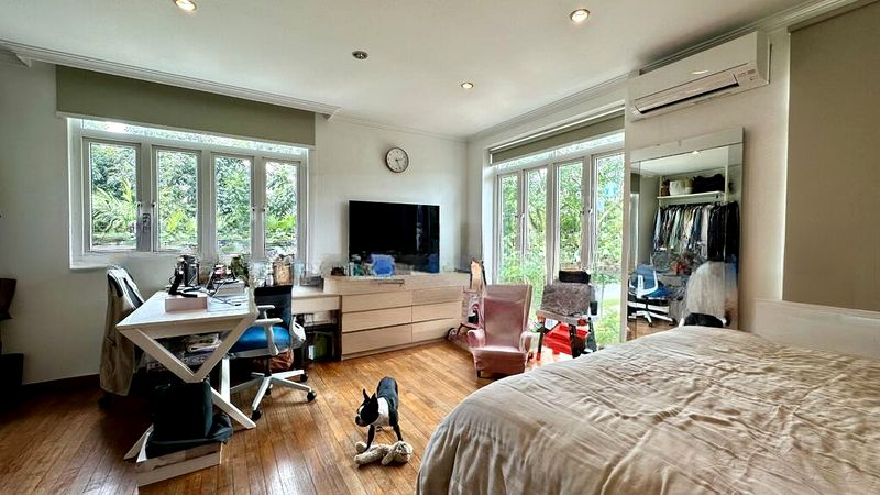 Step into a world of elegance and tranquility as you enter this exquisite 5-bedroom unit at Shamrock Park. Bathed in abundant natural light, the bright and airy ambiance is accentuated by floor-to-ceiling glass sliding doors that offer breathtaking views of the private swimming pool and lush greenery. The marble flooring throughout adds a touch of luxury, while the eclectic decor invites a sense of warmth and comfort.