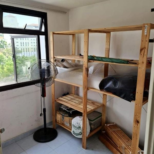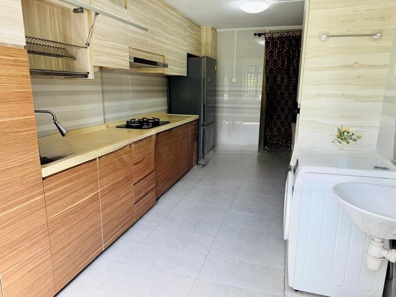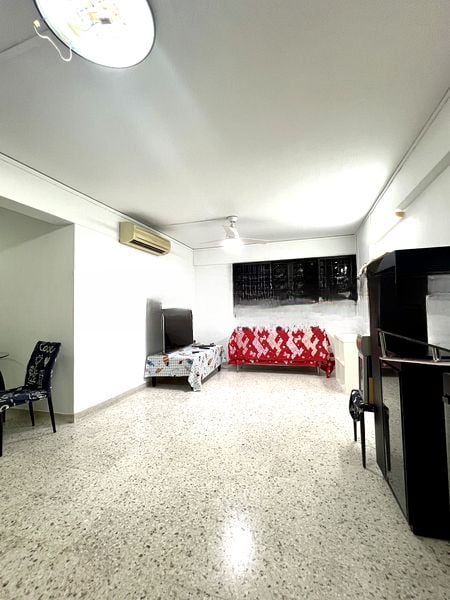 Step into a cozy haven where urban views meet functional design. The well-maintained unit greets you with moderate natural light filtering through the windows, illuminating the tiled flooring and white walls of the living room. The ambiance is inviting, making it the perfect space to unwind or entertain.