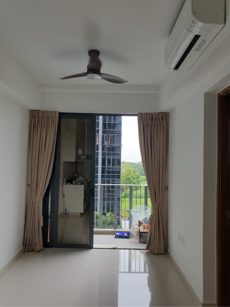 Step into a world of tranquility as you enter this brand-new 1-bedroom unit at Parc Botannia. Bathed in abundant natural light, the bright and airy ambiance is complemented by lush greenery views through full-height sliding glass doors. The polished floor tiles and marble-patterned finishes create a sophisticated yet inviting atmosphere, making you feel right at home.