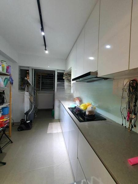 Step into this beautifully maintained 3-bedroom HDB flat, where modern minimalist design meets functionality. The spacious living area welcomes you with natural light filtering through large windows, complemented by a calming ambiance and chic finishes. The wood-look cabinets in the kitchen and the built-in wardrobe with glass doors add a touch of elegance and sophistication to your everyday living.