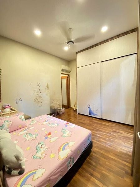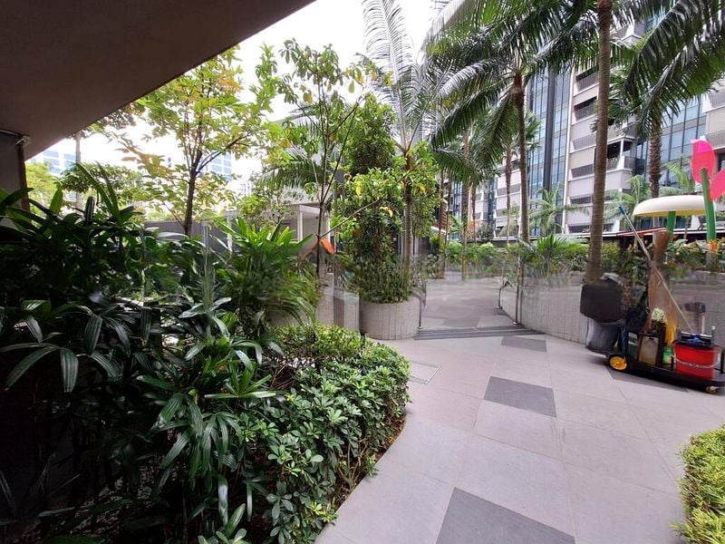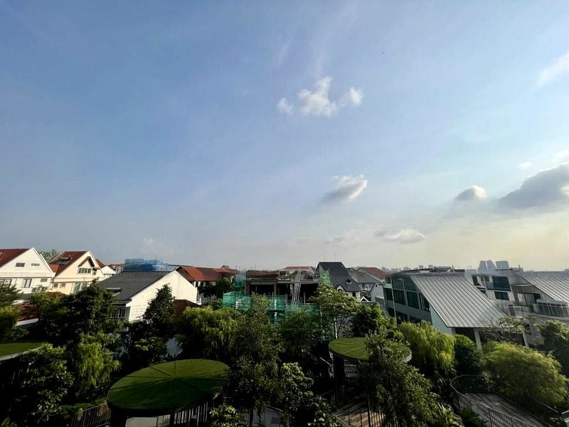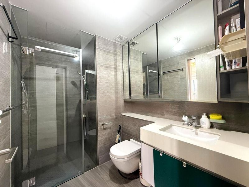 This well-maintained 2-bedroom unit features a stylish L-shaped kitchen adorned with a marble-look backsplash, equipped with an induction hob and built-in oven, perfect for culinary enthusiasts. The open layout seamlessly connects the living spaces, while the extensive built-in storage cabinets provide practicality without compromising on aesthetics. Step out onto the balcony to enjoy unobstructed views of the landed estate, a perfect spot for morning coffee or evening unwinding.