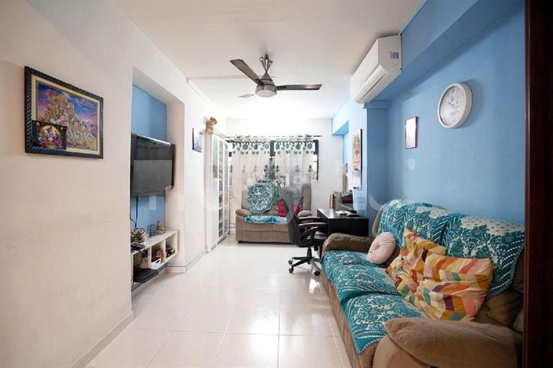 Step into this spacious 3-bedroom HDB flat and feel the potential of a home ready for your personal touch. The moderate natural light filters through the full-length curtains, illuminating the tiled flooring and creating a warm ambiance. The two-tone kitchen cabinetry adds a splash of character, while the ceiling fan with integrated light ensures comfort throughout the day.