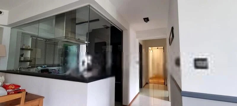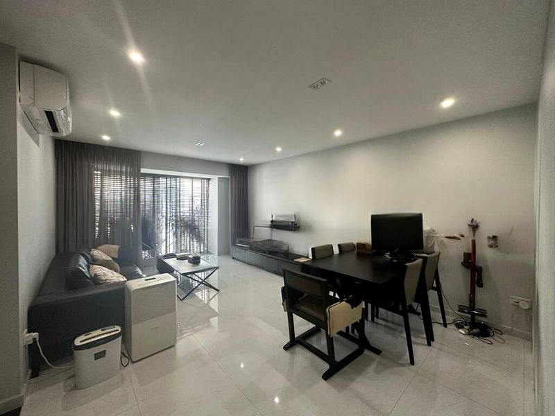 Step into a world of modern elegance as you enter this beautifully renovated HDB flat at 1A Cantonment Rd. The abundant natural light floods the open-concept living area, highlighting the polished tile flooring and the striking designer feature wall adorned with circular motifs. Floor-to-ceiling windows frame a captivating urban skyline view, creating an inviting ambiance that is both bold and sophisticated.