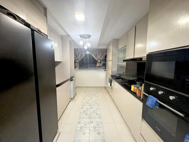Step into a warm embrace of traditional charm as you enter this well-maintained HDB flat. The open-concept living area, accentuated by purple beams and a cozy wooden sofa set, invites you to unwind in a space filled with moderate natural light. Enjoy urban views that add a vibrant backdrop to your daily life.