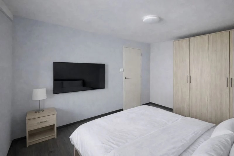 Step into this beautifully renovated 2-bedroom flat and be greeted by an inviting ambiance that perfectly balances modern minimalism with urban charm. The open layout of the living room, adorned with dark wood-look vinyl flooring, allows natural light to flow through, creating a warm and welcoming atmosphere. Enjoy the urban views from your living space, complemented by stylish finishes and a black leather sofa that invites relaxation.