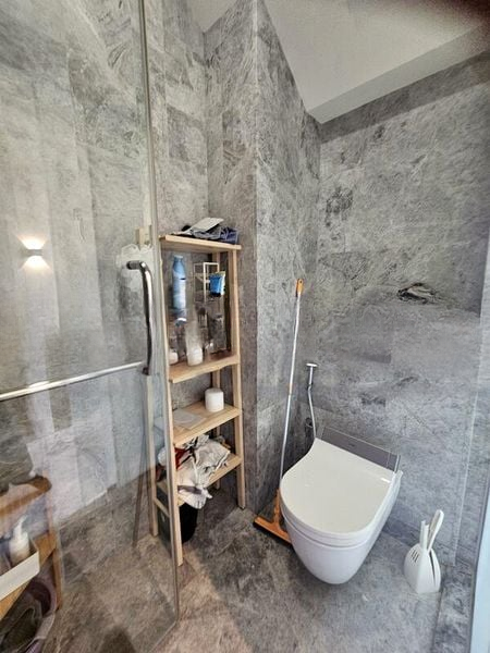 Step into this beautifully designed unit at BIJOU and be greeted by an abundance of natural light streaming through the floor-to-ceiling windows. The modern minimalist ambiance is accentuated by a stunning marble-effect feature wall and sheer curtains that frame the lush greenery outside, creating a serene retreat in the heart of the city.