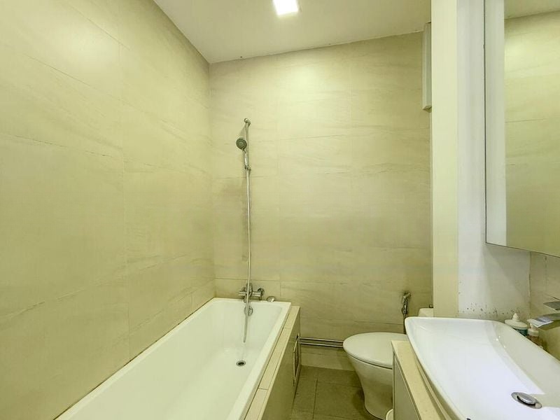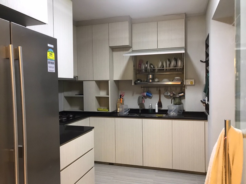 This well-maintained 3-bedroom flat boasts an open-concept layout that seamlessly connects the living and dining areas. The modern kitchen features striking black and white cabinetry, complemented by sleek black countertops and essential appliances, making it a culinary delight. Each bedroom is thoughtfully designed with ceiling fans and ample storage, including large built-in wardrobes that add both functionality and style.