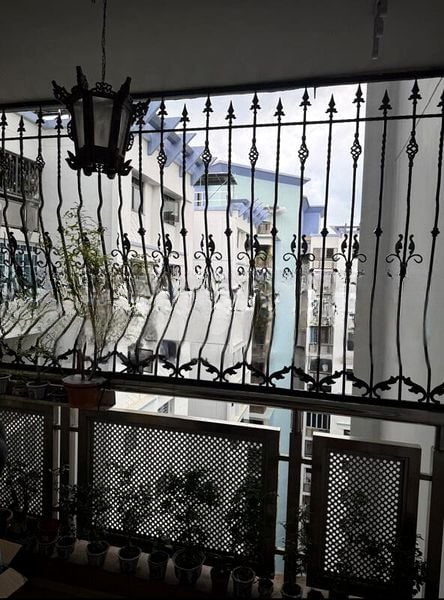 Step into this inviting 3-bedroom HDB flat and be greeted by a warm ambiance that blends functionality with comfort. The living room features a pink L-shaped sofa and a large decorative wall mirror that enhances the space, while moderate natural light filters through, creating a cozy atmosphere. Enjoy views of lush greenery from the windows, providing a serene backdrop to your daily life.